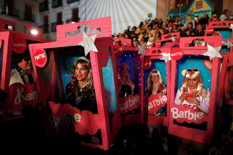 在市鎮科因(Coin),一群人相約打扮成玩具店裡的芭比娃娃,在一群慶祝人潮中顯得格外醒目。