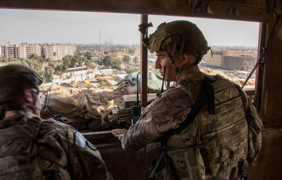 隔著一段距離,美軍正在監控美國在巴格達的駐伊拉克大使館的狀況。