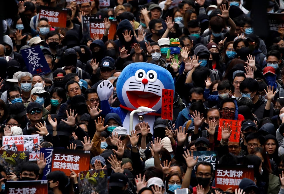 在 1月1日新年這一天,反政府示威者持續走上街頭抗議,呼籲政府重視他們對「五大訴求,缺一不可」的訴求。
