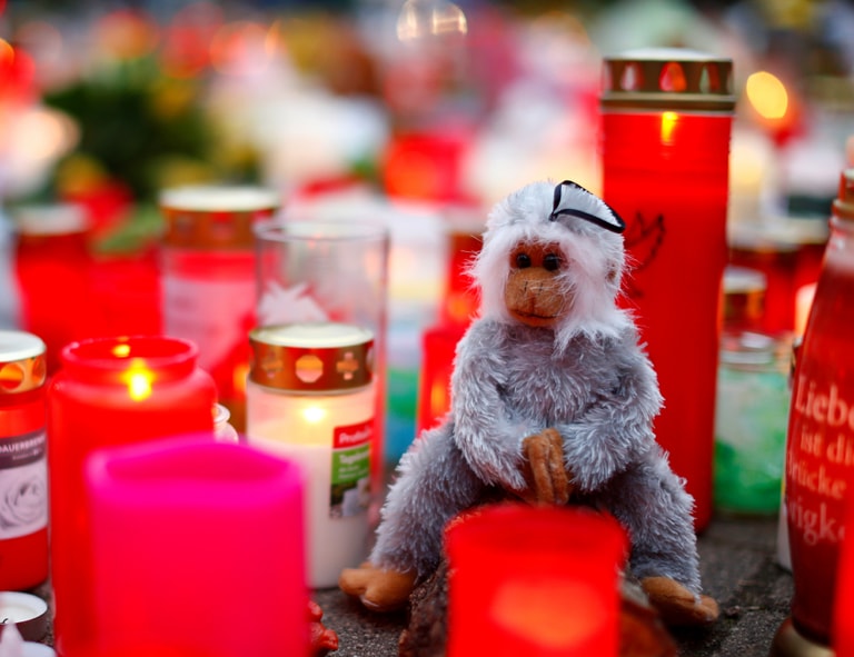 在克雷菲爾德(Krefeld)動物園的「大猿屋」(Great Ape House),人們擺下了無數蠟燭與鮮花,悼念 30隻葬身火場的生命。