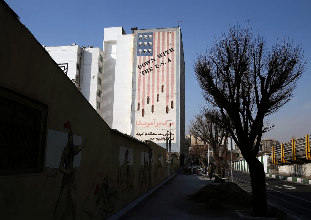 在首都德黑蘭(Tehran),一座建築上被留下了反美壁畫,上頭的訊息顯得再清晰不過。