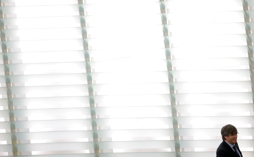 加泰隆尼亞前主席普伊格蒙特(Carles Puigdemont)來到了歐洲議會,身為歐洲議員的他準備要來開會了。