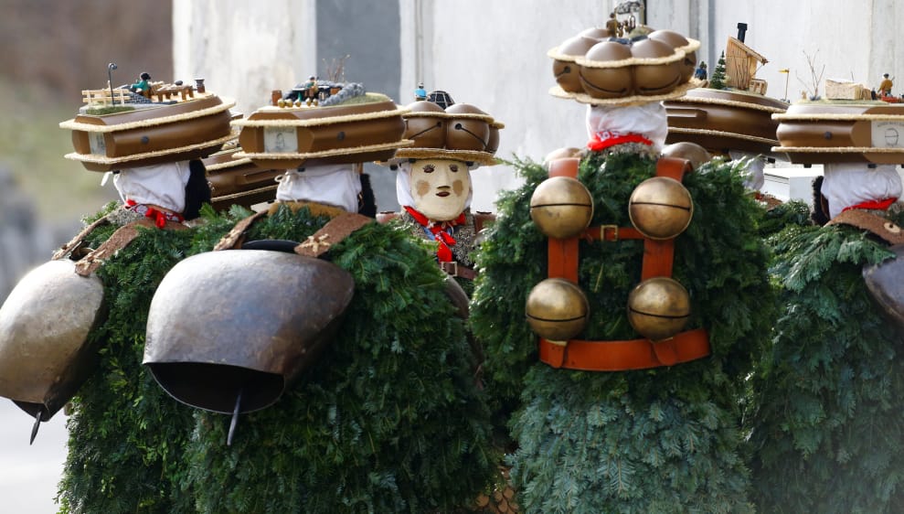 在傳統儀式Sylvesterchlausen,打扮成「Chlaeuse」的人們背起牛鈴或鈴鐺行走在村落之間,要藉此嚇走惡靈。
