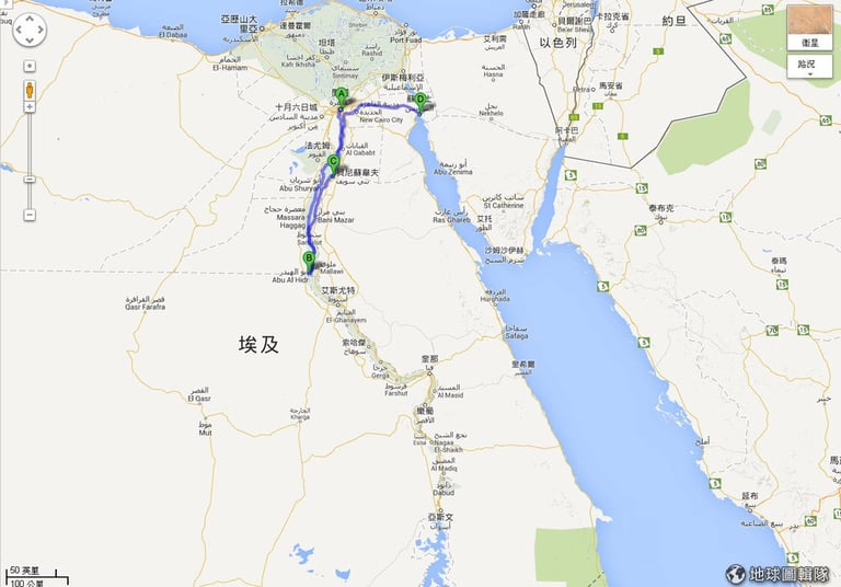 不只在主要大城開羅出現傷亡,埃及其他地區例如德爾加(圖中B點)、貝尼蘇韋夫(圖中C點)、蘇伊士運河市區(圖中D點),都傳出衝突和死傷的消息。