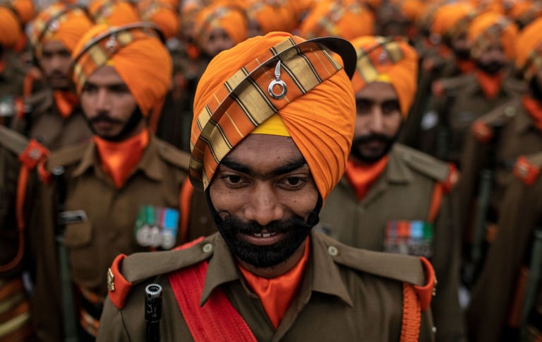 隨著 26號的共和日慶祝遊行即將登場,印度軍人們穿戴整齊在新德里進行彩排。