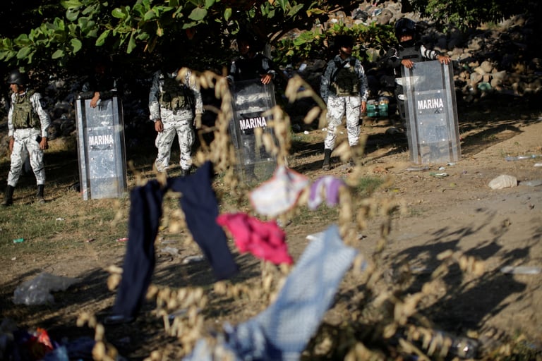 在墨西哥和瓜地馬拉的邊界,「車隊移民」(Migrant Caravan)試圖想通過,繼續前往他們的目的地:美國。