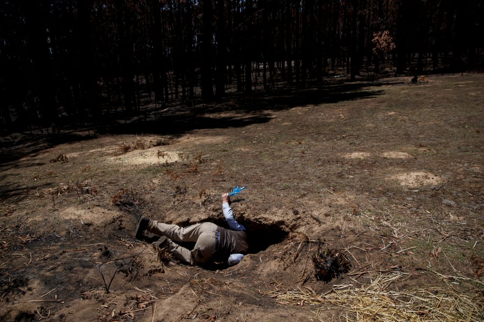 在森林大火肆虐的新南威爾斯州邦達努鎮(Bundanoon),當地袋熊照護機構的創辦人克萊頓(John Creighton)鑽進一個個洞穴中尋找袋熊的身影。