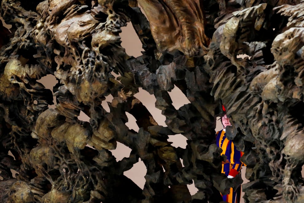 在羅馬天主教宗方濟各(Pope Francis)進行每周彌撒前,「瑞士近衛隊」(Swiss Guards)在一旁待命。