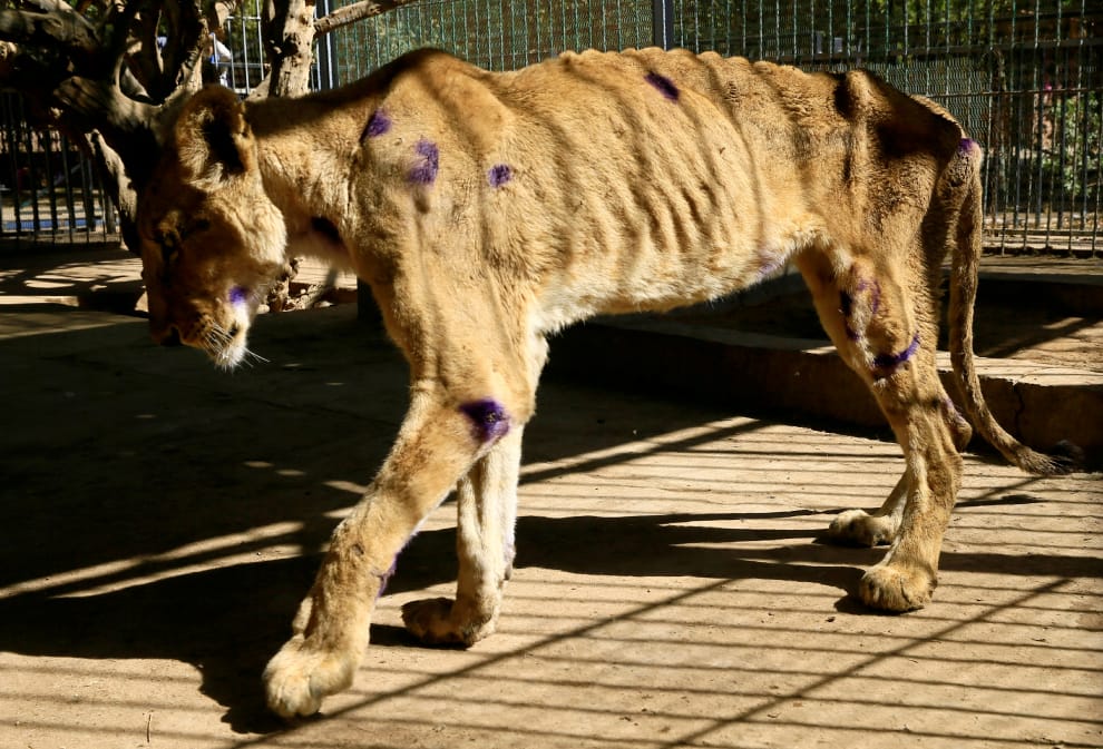 在首都碦土木的庫雷希動物園(Al-Qureshi Park),裡頭住著一隻隻營養不良的獅子,園方因為政府財務緊縮、沒辦法再資助動物園營運的關係,拿不出糧食餵食飢餓的獅群,導致每一隻獅子都營養不良。