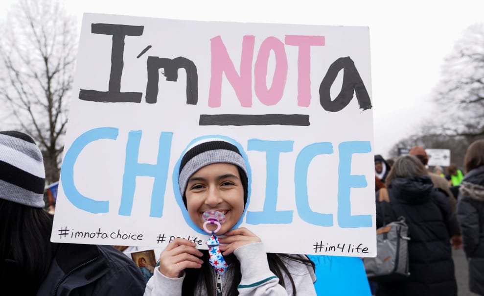 在第 47屆為生命遊行上,一名年輕的反墮胎人士做了一面寫著「我不是一個選擇」字樣的海報,要支持墮胎的人士正視生命不能選擇這件事。