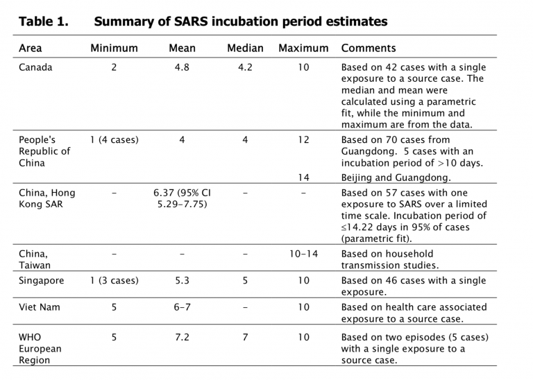 傳染途徑、病毒接受劑量、個案免疫狀況都有可能影響潛伏期長短,一般來說SARS的潛伏期是2-7天,最長可達10天以上。