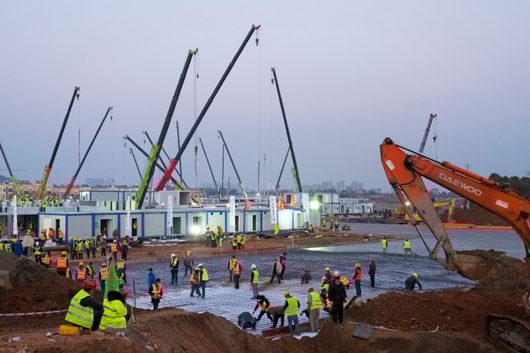 風風火火地興建、完工、交付的火神山醫院已經正式派上用場。同樣位於武漢,選在武漢江夏區軍運村、病床數高達 1,600張的雷神山醫院,目前則正在趕工中,預計將於 6號完工交付使用。