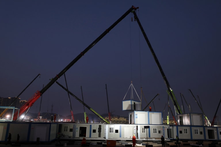 為了在 10天內迅速完工並節省成本,火神山醫院採用預先完成模組,運至工地現場後一塊塊組裝、堆疊,類似「堆積木」的方法完成興建工程。