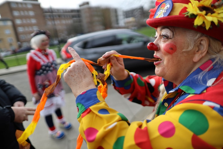 2號這天,英國各地的小丑們來到倫敦諸聖教堂(All Saints Church),在此向已故的現代小丑之父格里馬爾德(Joseph Grimaldi)致敬。出生於 18世紀的格里馬爾德是英國攝政時代(西元 1811-1820年)最著名的喜劇演員,他的招牌白色小丑臉妝也成為後世爭相模仿的範本。