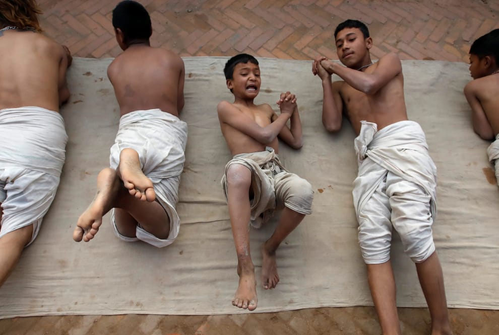 在為期一個月的斯瓦斯阿尼節(Swasthani Brata Katha festival)的最後一天,信眾們以在地上滾動作結。