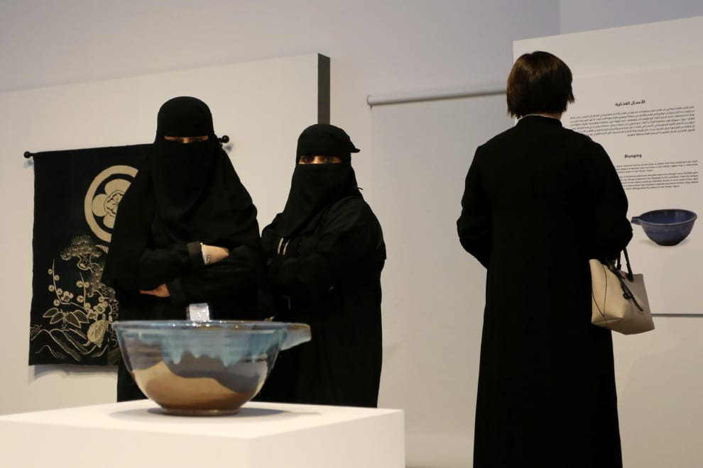在首都利雅德國家博物館內,參觀民眾正在欣賞來自日本的手工藝品。