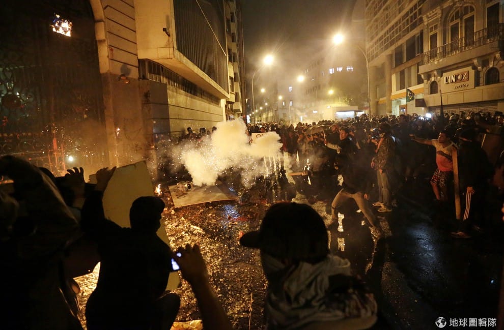 巴西大城里約(Rio de Janeiro)爆發嚴重警民衝突,上萬名示威民眾丟擲火焰彈和棍棒,鎮壓群眾的警方也拋出催淚瓦斯,當地的夜晚全籠罩在吆喝聲與火光中。這也是繼6月份的大規模衝突後,再度躍上國際版面的示威活動。