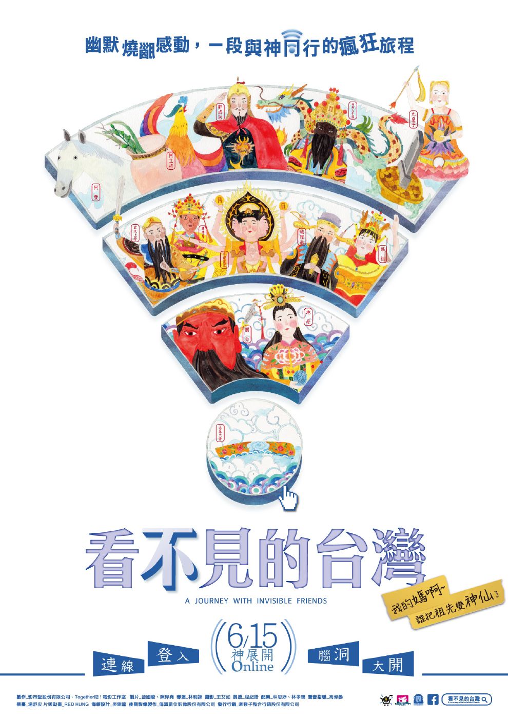 《看不見的台灣》一路紀錄「與神同行」的互動。從海報裡可以看到,鄭成功依然穿著傳統戰袍,但形象顯得可愛親民,還以手勢致意。