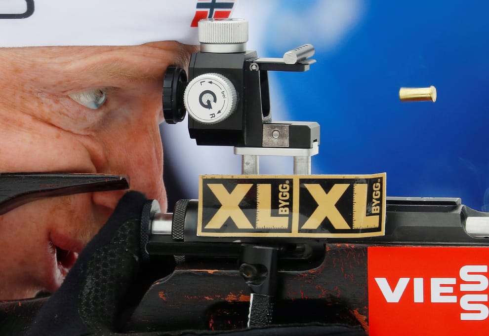 在義大利北部市鎮拉蘇南泰爾塞爾瓦(Rasun Anterselva),「冬季兩項」(Biathlon)比賽選手、來自挪威的鮑伊(Johannes Thingnes Boe)正在為射擊比賽暖身。「冬季兩項」包含越野滑雪和射擊,是非常受歡迎的冬季運動,也是冬季奧運的比賽項目之一。