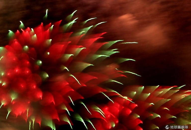 「福田式攝影」是由日本的福田武所創的特殊拍攝手法,可以讓煙火呈現嶄新風貌的技術在攝影界大受歡迎,近年來只要說到煙火活動時,就會看到不少攝影師用這特別的技術拍攝煙火。朱如怡,攝於台灣,2013