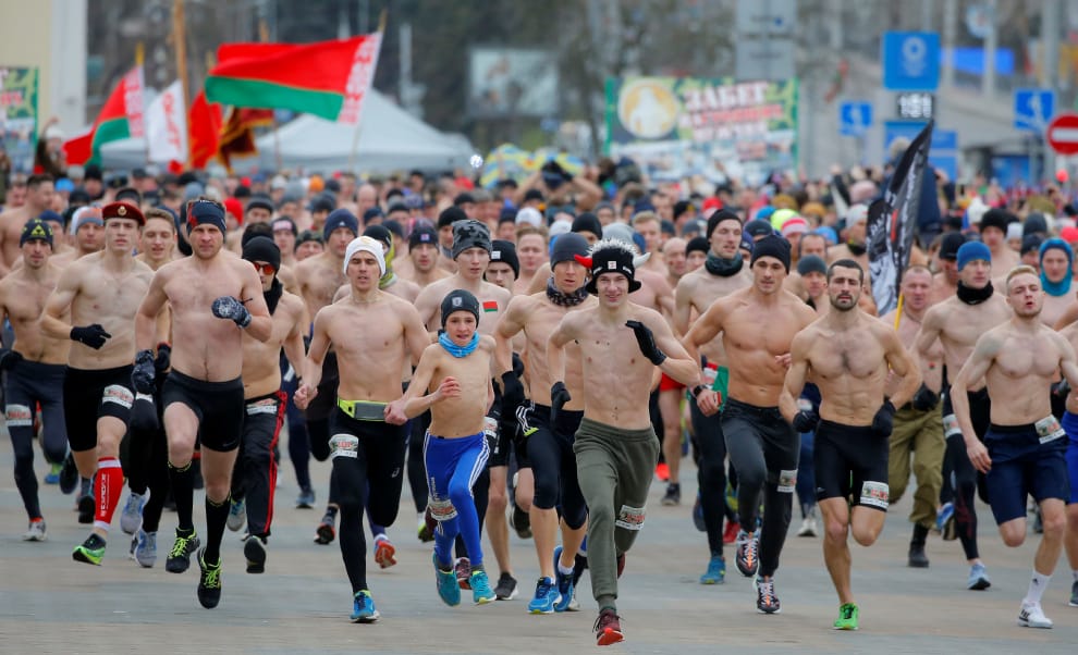 23號這天,首都明斯克舉辦了一場男子漢馬拉松,參賽者無不裸上身賽跑,藉此紀念祖國保衛者日(Defender of the Fatherland Day)。
