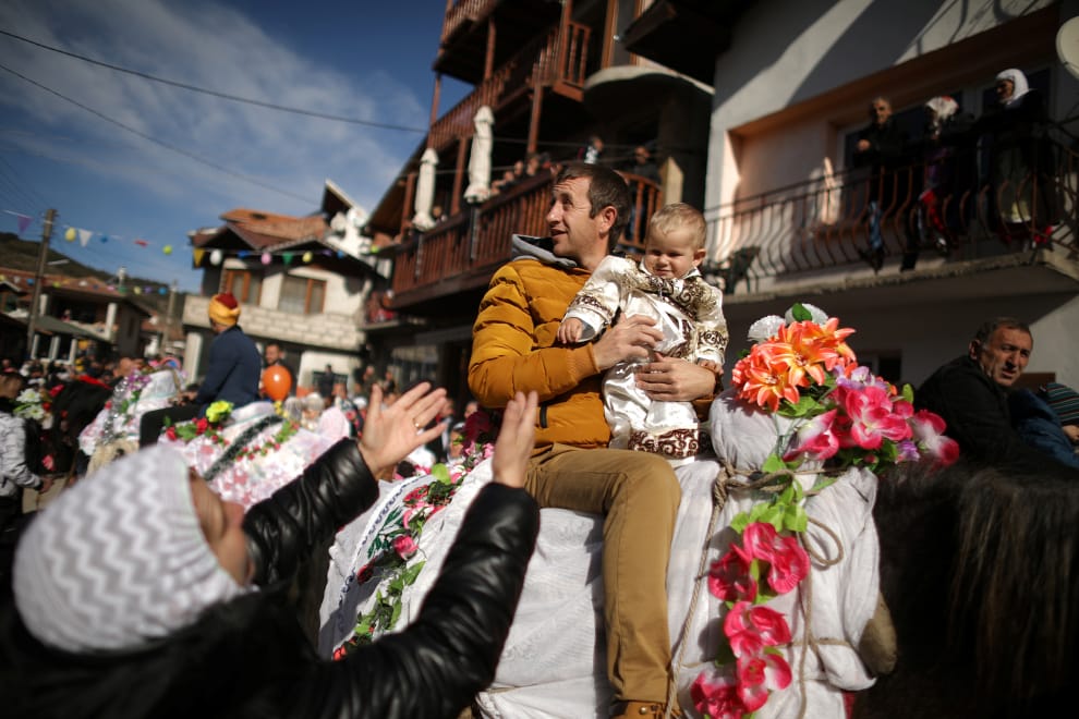 在保加利亞西南部的里布諾沃(Ribnovo)村,當地穆斯林抱著小男孩騎馬參加儀式,待會這些小男孩就會行割禮,象徵遵從先知與阿拉訂下的割禮契約。