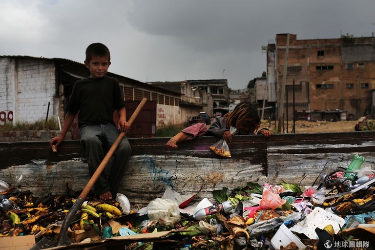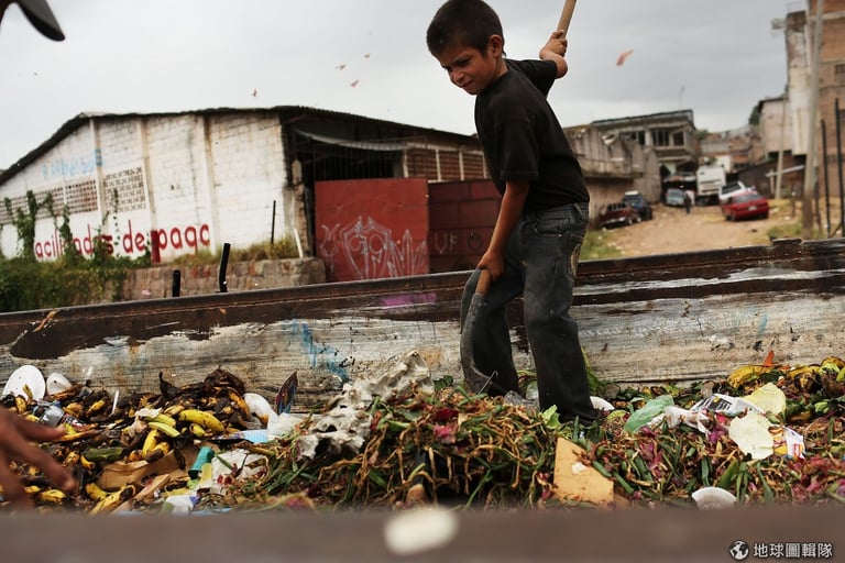 小男孩正在垃圾場用力翻找回收物品。圖片來源: Spencer Platt/Getty Images