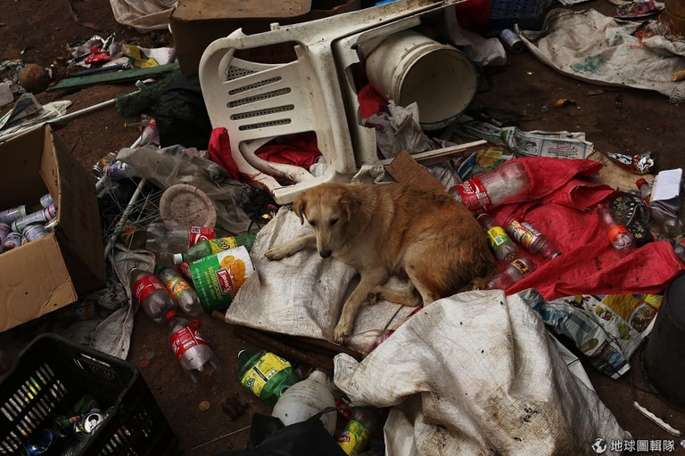 狗狗只能棲身在成堆的垃圾雜物中。圖片來源: Spencer Platt/Getty Images