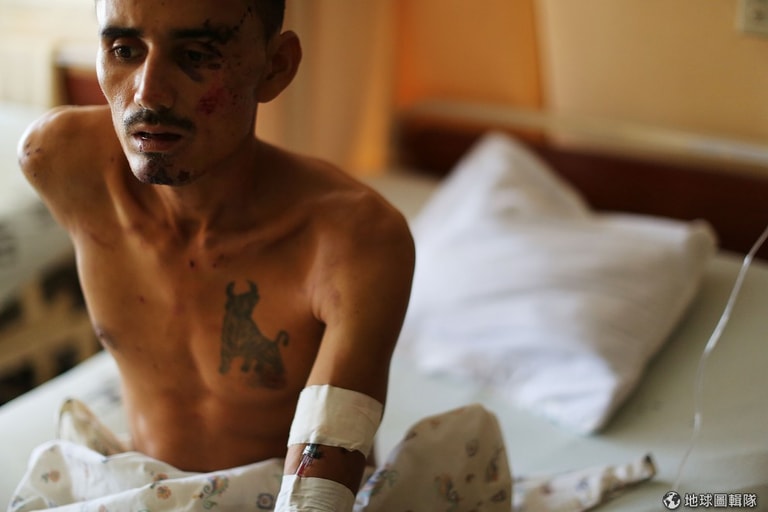 醫院內,一名因車禍受傷的男子。圖片來源: Spencer Platt/Getty Images
