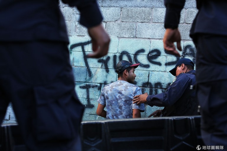 被幫派暴力充斥的社區,到處都是巡邏的警察,照片中一名年輕人正被警察搜身中。圖片來源: Spencer Platt/Getty Images