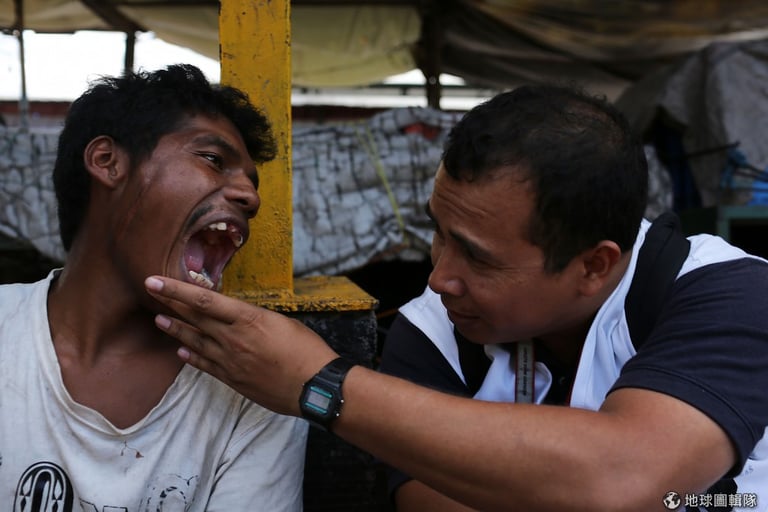 無國界醫生正在檢查遊民的雙眼。無國界醫生( Doctors Without Borders)是一非官方組織,他們在宏都拉斯首都提供當地遊民醫療與心理的照護。組織每天都會安排團隊到街上探訪需要幫助的街友們。圖片來源: Spencer Platt/Getty Images