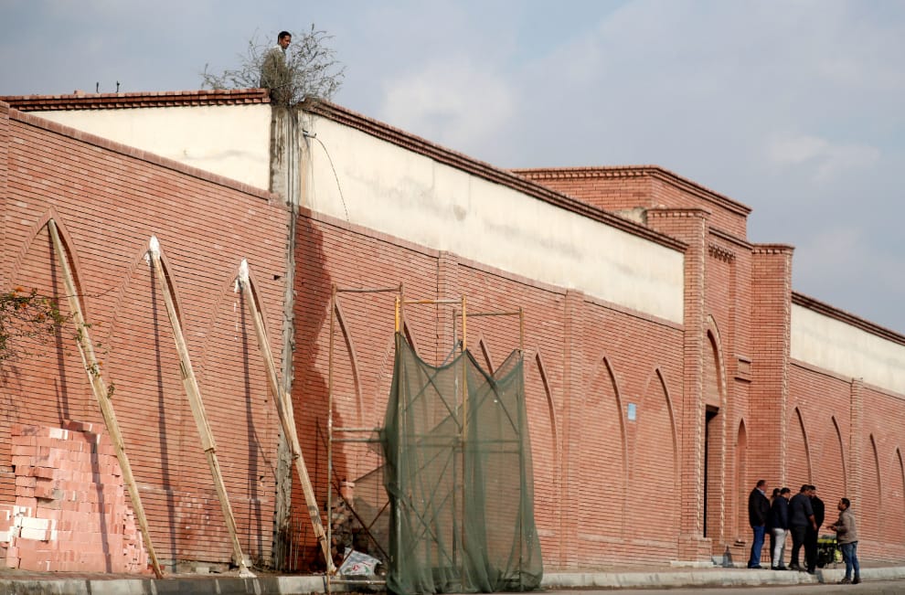 在開羅省東部的納斯爾市(Nasr City),維安人員聚集在一座墓園前討論該如何讓埃及前總統穆巴拉克(Hosni Mubarak)順利下葬於此。