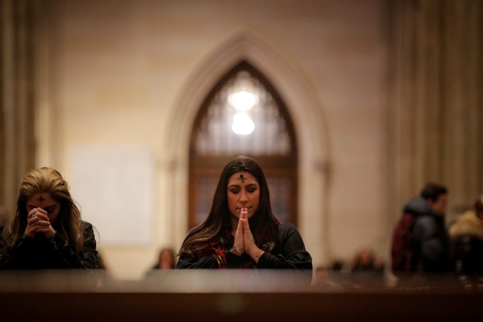 在紐約聖派翠克大教堂(St. Patrick's Cathedral),信徒們額頭上用香灰畫上了十字象徵悔改,這是每年大齋期(Lent)起始日要做的儀式。