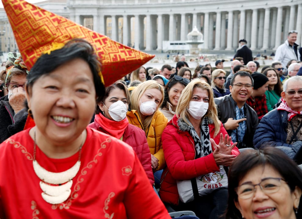 26號這天,信徒們在梵蒂岡等待羅馬天主教宗方濟各(Pope Francis)的每周接見大會。為了因應 2019新型冠狀病毒(2019-nCoV)的影響,有的信徒戴上了口罩。
