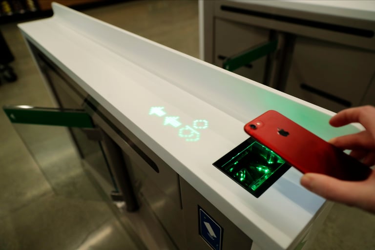 Amazon Go Grocery 使用與 Amazon Go 相同的門市管理和收銀系統,消費者透過智慧手機應用程式進入超市,天花板的鏡頭和感測器會記錄用戶從貨架拿取哪些商品,消費者無需當場付款,離開超市後,應用程式會自動結算帳單。亞馬遜辨識系統可將一個帳戶綁定多位家庭成員,建議消費者與其他非同帳戶親友購物時,不要幫別人拿取商品,系統辨識的是客戶本人和相應帳戶,而不是傳統超市的購物車。