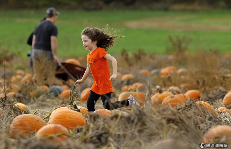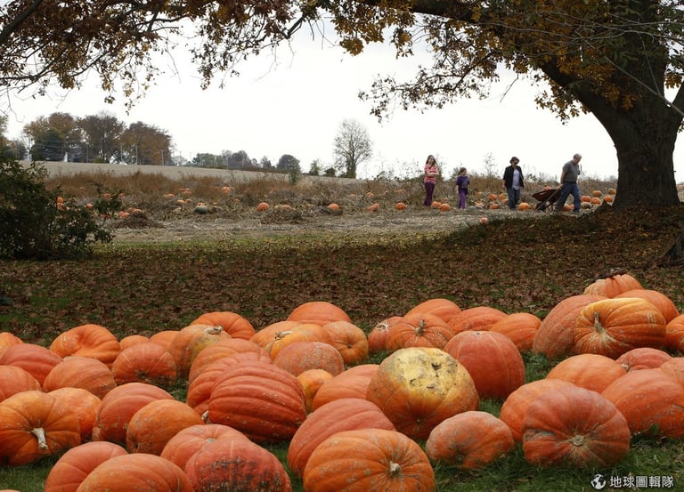 馬里蘭州的郊外有滿滿的亮橘色南瓜,與蕭瑟的秋天景色對比之下變得相當搶眼。