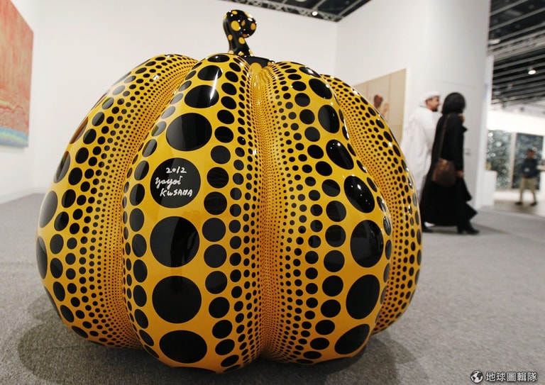 草間彌生最著名的大南瓜,巡迴到了當地的美術館中。