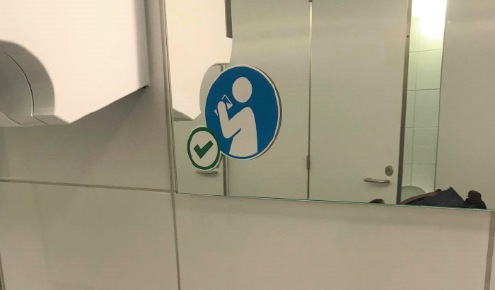就在年初我從芬蘭返台參加總統選舉投票時,在登機前想喝口水,卻四處尋覓不著飲水機,連著詢問兩名機場工作人員後,兩人都樂意地跟我說:「往二樓走會看到廁所,裡面就可以裝水了。」我半信半疑地走向廁所,心裡還納悶為什麼飲水機會擺在廁所?但當我到達時,眼前這一幕可把我看傻了,我親眼看到一個芬蘭人,正在裝水龍頭裡流出的水,牆上的梳妝鏡也貼著明顯的裝水圖示標誌。我依樣畫葫蘆在自己的環保杯裡裝水,喝了一口後,確信這裡的水品質跟我平常在芬蘭家裡扭開水龍頭喝到的自來水質一樣純淨甘甜,讓我驚嘆不已。