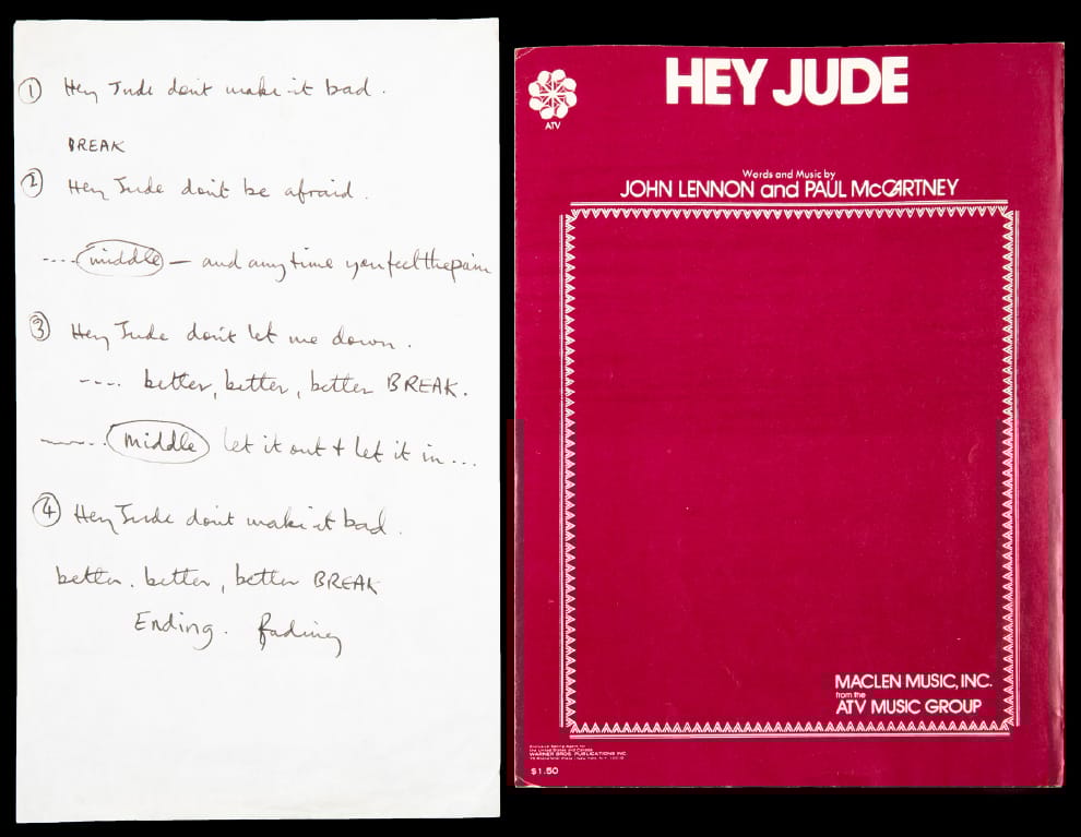 在美國紐約的一場拍賣會上,保羅麥卡尼(Paul McCartney)在英國倫敦準備經典歌曲「Hey Jude」的錄音會議時,寫下的一張筆記將被拍賣。拍賣方在拍賣前也特別提供照片,供外界仔細檢視。