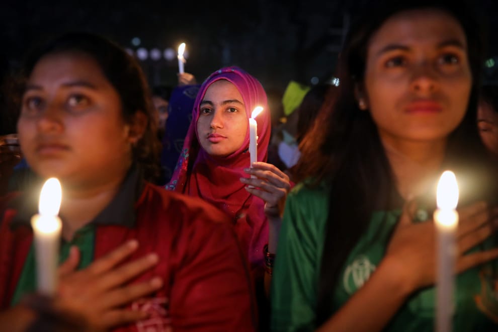 在孟加拉首都達卡(Dhaka),來自各個不同組織的婦女們點起蠟燭,一同紀念 3月8日國際婦女日。