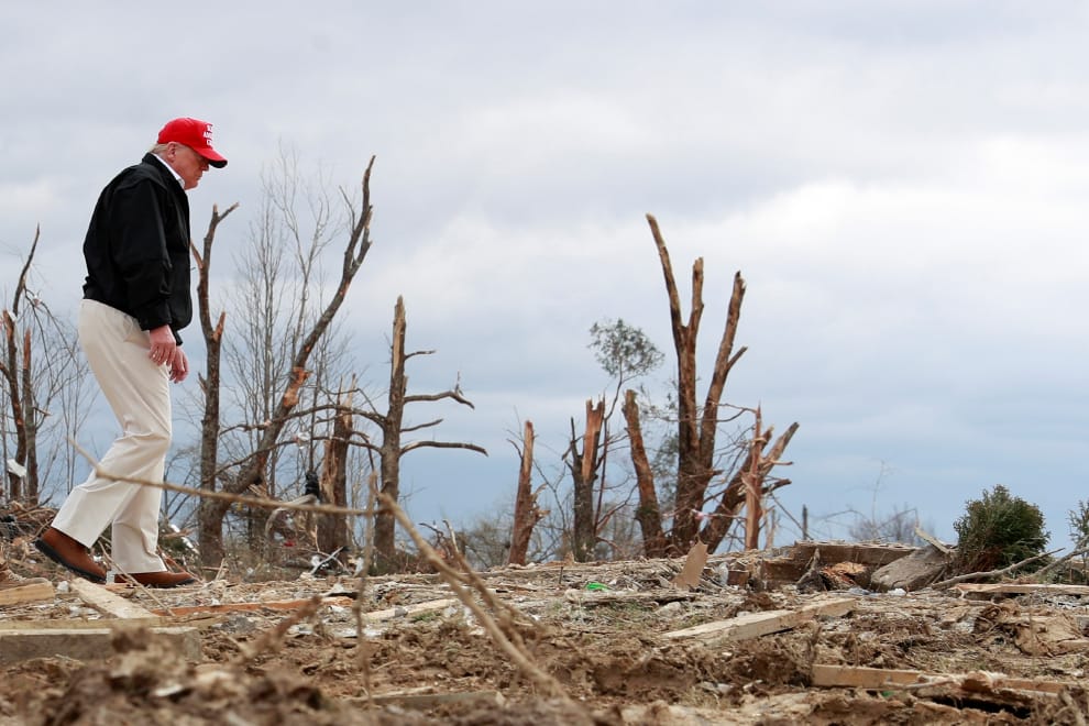 在上周二(3),位在美國中部的田納西州(Tennessee)發生嚴重的龍捲風災情,造成至少 25人死亡。周五(6),美國總統川普(Donald Trump)隨即搭乘直升機,前往納什維爾(Nashville)小鎮視察災情。