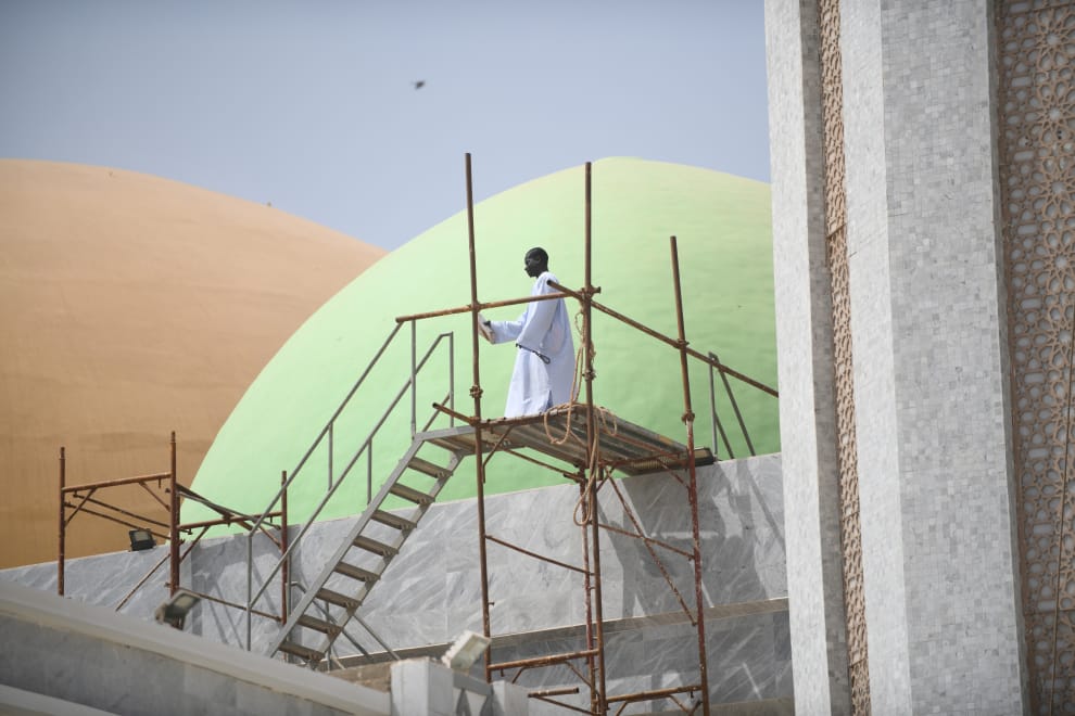 在塞內加爾的首都達卡(Dakar),一名塞內加爾穆里德兄弟會(Senegalese Mourides brotherhood)的成員,於周五的祈禱會後,站在達卡的吉內大清真寺(Grand Mosque Massalikoul Djinane)頂端朗讀可蘭經。
