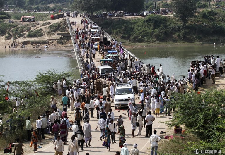 上周日,原是印度中央邦(Madhya Pradesh)重要的重要節慶,成千上萬的居民攜家帶眷前往朝聖,就在近萬信眾全走上一座長約500公尺的橋時,人群中卻傳出橋快斷掉的謠言,原本欣喜的心情全轉為恐懼,慌亂的情緒開始在人潮中散開來,人們開始推擠衝撞、甚至有人跳到河中,一旁維持秩序的警察也拿出警棍嚇阻群眾,但不幸的踩踏意外就這麼發生。