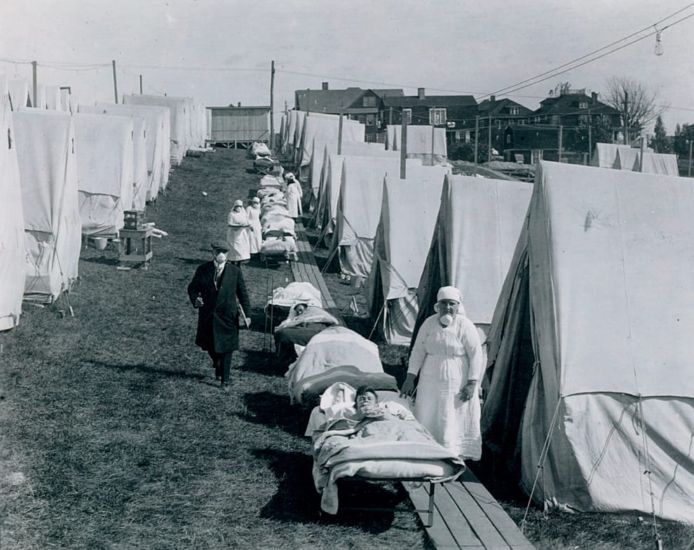 當年西班牙流感大爆發時,病患迅速用盡醫院的病床。最後,甚至不得不讓教會的修女們一同投入防疫工作中。
