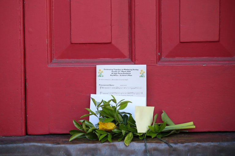 在倫敦一棟房子的台階上,可以看到用來慶祝母親節的花束。