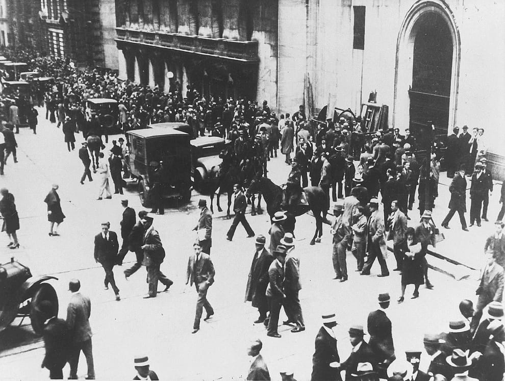 圖為 1929年經濟大蕭條發生時,美國股市大跌,造成民眾一片慌亂。透明膠帶推出時適逢大蕭條,「老物救星」的行銷路線在當時受到大眾歡迎,銷量激增。
