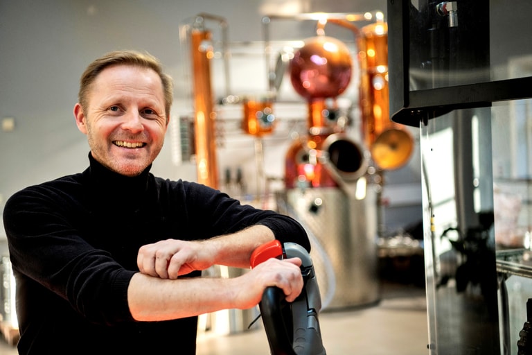 在博恩霍爾姆島(Bornholm)的一座釀酒廠內,釀酒師內斯特(Henrik Nerst)正在研究怎麼利用生產伏特加的器具製造防疫洗手液。