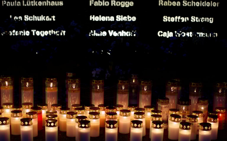 在哈爾滕市(Haltern am See)一所高中的體育館內,可以看到五年前在「日耳曼之翼」空難事件中罹難者的名字和悼念蠟燭,原本預計在 24號舉行的大型悼念會因為疫情的關係取消,不過仍開放民眾前來悼念。