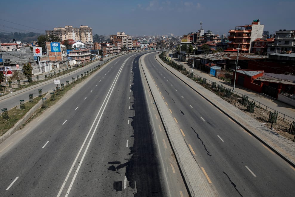 尼泊爾首都加德滿都(Kathmandu)的公路,在政府下達封鎖令後,路上一台車也沒有。