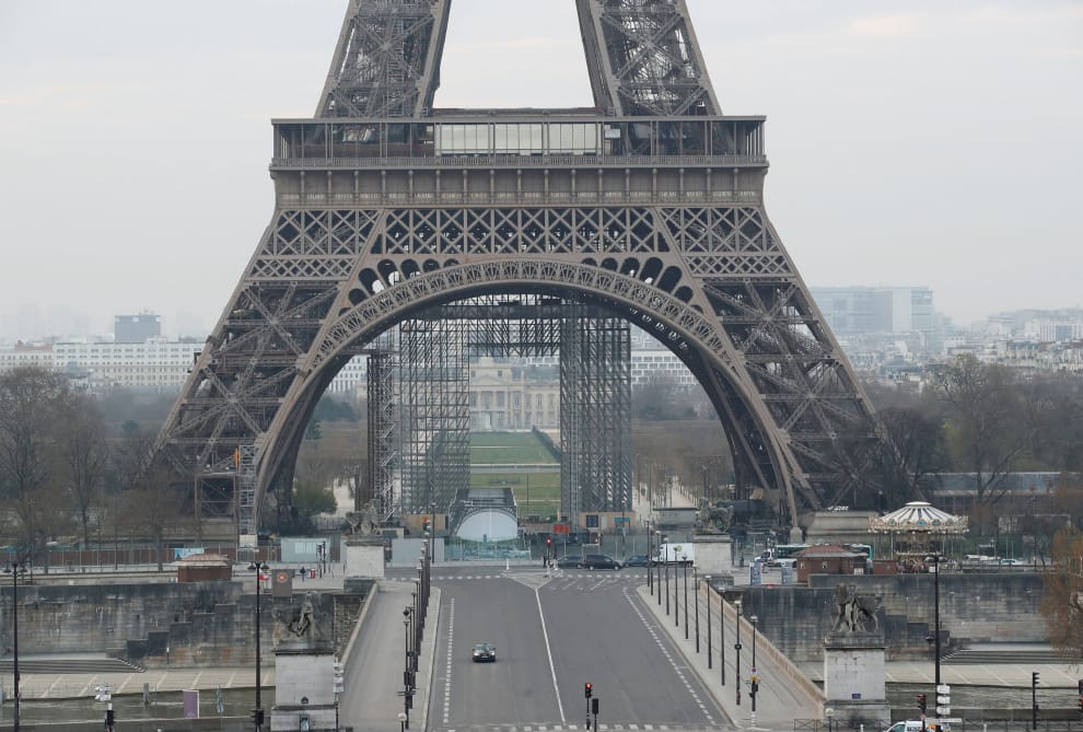 法國巴黎羅浮宮前的玻璃金字塔。羅浮宮博物館也在巴黎全城封鎖後,暫停對外開放。